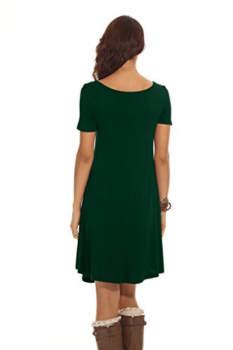 POSESHE Womens Basic eLong Causal Tunic Top Mini T-shirt Dress Dark Green S