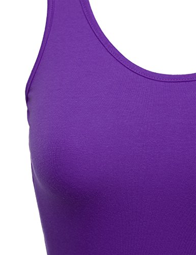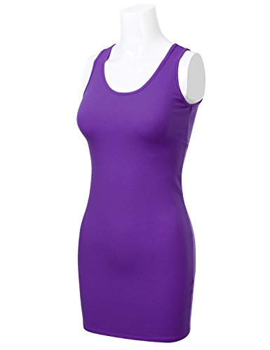 FLORIA Womens Scoop Neck Fitted Stretch Bodycon Mini Tank Sexy Dress PURPLE S
