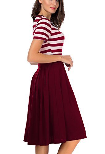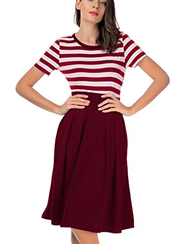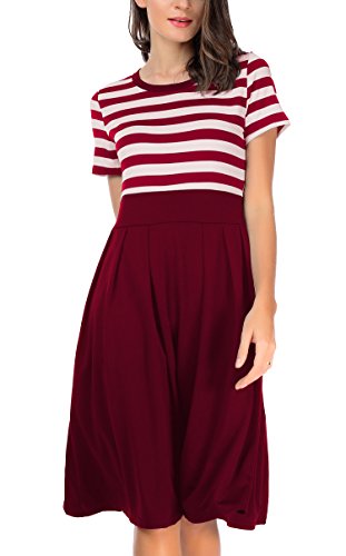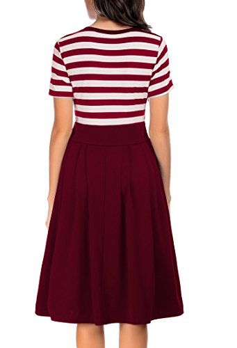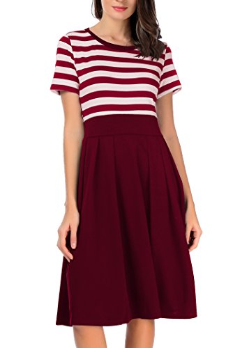 CARTERSTORY Women's Vintage Stripe Scoop Neck Short Sleeve Swing Dress Red S