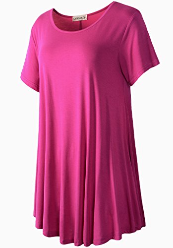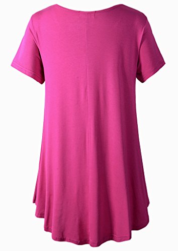 LARACE Women Short Sleeves Flare Tunic Tops for Leggings Flowy Shirt (S, Fushia)