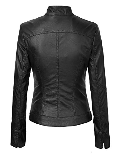 MBJ WJC747 Womens Dressy Vegan Leather Biker Jacket S BLACK