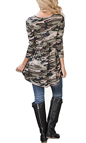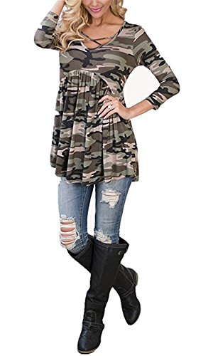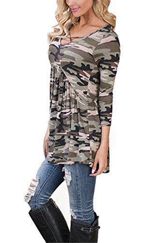 FCYOSO Women Camouflage Crisscross V Neck Dress Shirts Army Green (US,M/Asia,L)