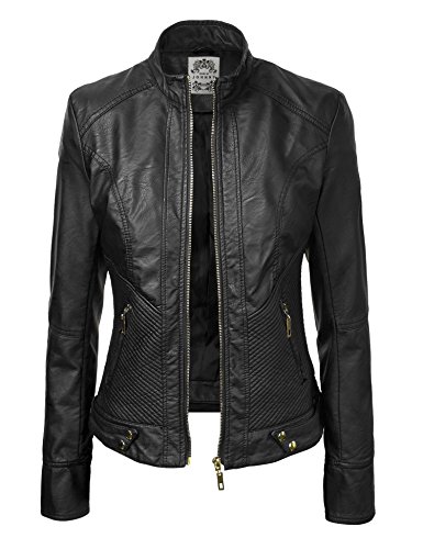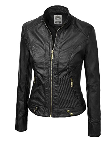 Women's Jackets Womens Faux Leather Zip Up Moto Biker Jacket with Stitching Detail