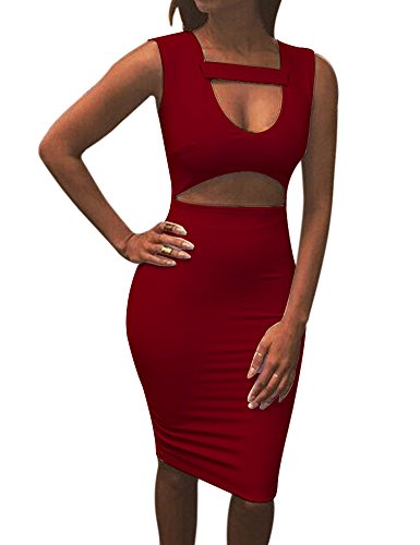 Allegrace Women Sexy Stretch Bodycon Mid Bandage Party Dress Wine Red S