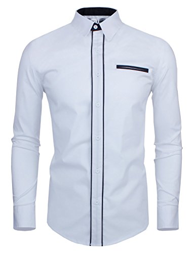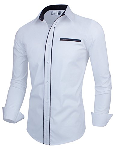 Tom's Ware Mens Premium Casual Inner Contrast Dress Shirt TWNMS310-1-CMS03-WHITE-US S