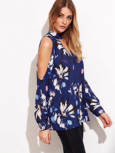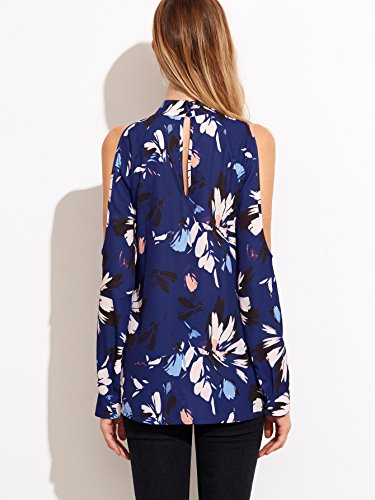 Floerns Women's Cold Shoulder Long Sleeve Choker Top Blouse Blue M