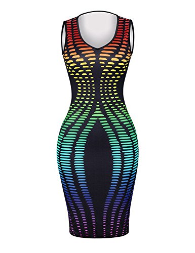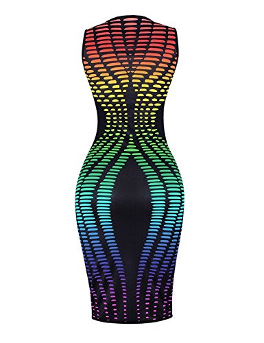 Ninimour Womens Sleeveless Stripe Print Slim Fit Package Hip Bodycon Dress