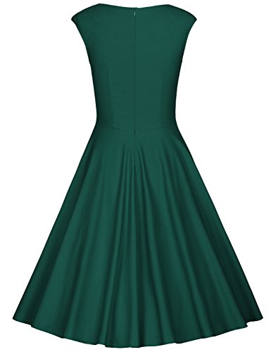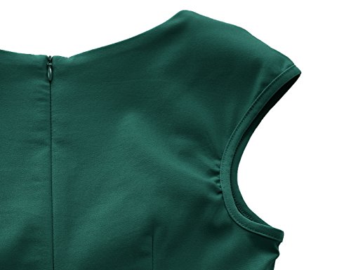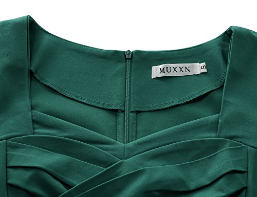 MUXXN Women Classy Sleeveless Ruched Fit and Flare Cocktail Dress (S Dark Green)
