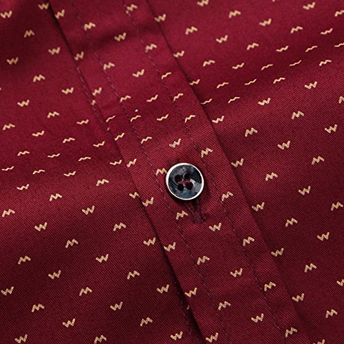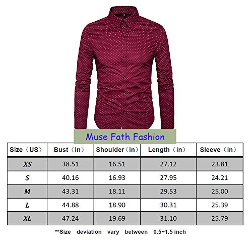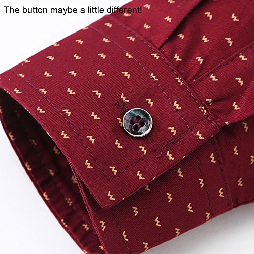 Muse Fath Men’s Printed Dress Shirt-100% Cotton Casual Long Sleeve Shirt-Slim Fit Interview Dress Shirt-Wine Red-S