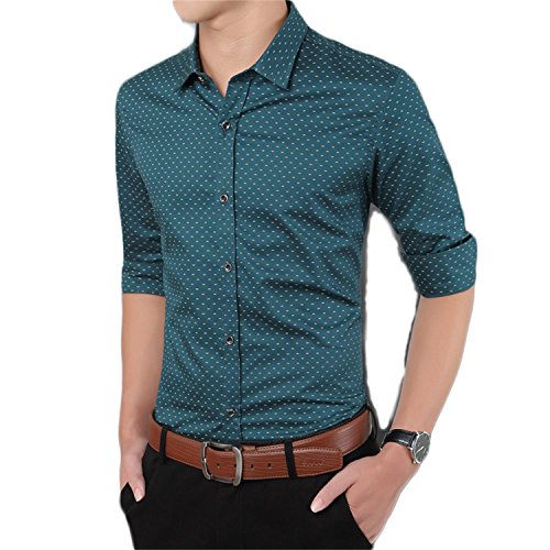 YTD Mens 100% Cotton Casual Slim Fit Long Sleeve Button Down Printed Dress Shirts US M Green