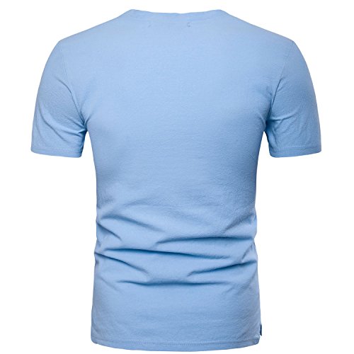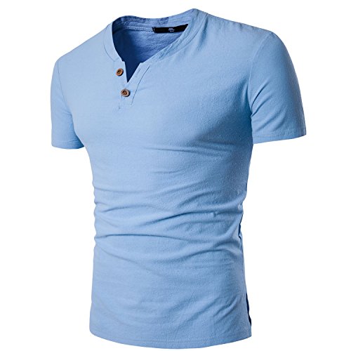 Manwan Walk Men Linen and Cotton V neck Short Sleeve Casual T Shirts Casual W50 (Small, Sky blue)