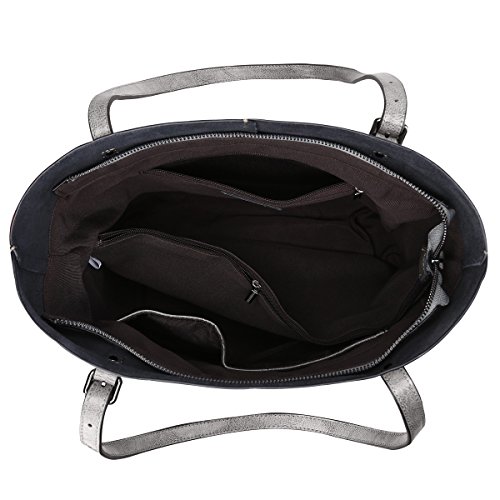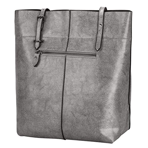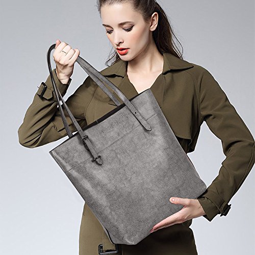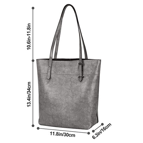 S-ZONE Vintage Genuine Leather Tote Shoulder Bag Handbag Big Large Capacity (Gray)