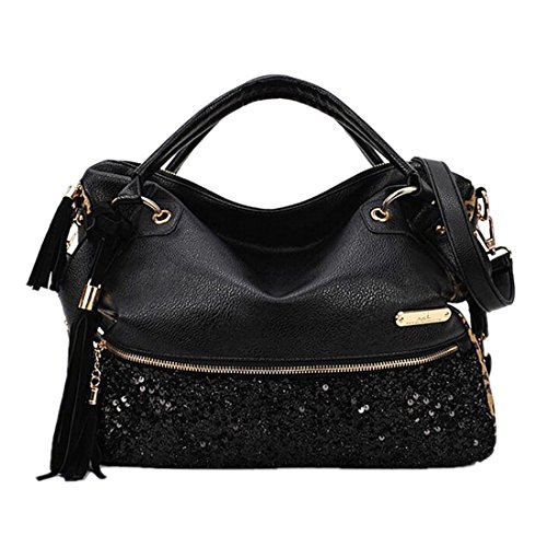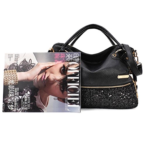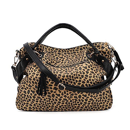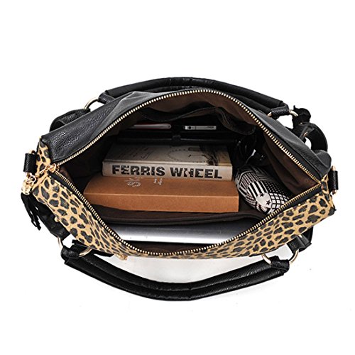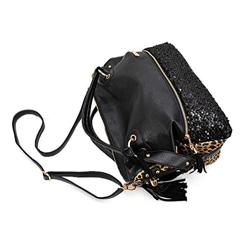 Qianle Fashion Sexy Leopard Print/ Black Bag Paillette Shoulder Bags Handbags for Women Leopard