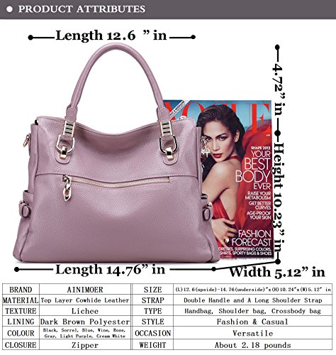 BIG SALE-AINIMOER Womens Genuine Leather Vintage Tote Shoulder Bag Top-handle Crossbody Handbags Large Capacity Ladies' Purse (Light Purple)