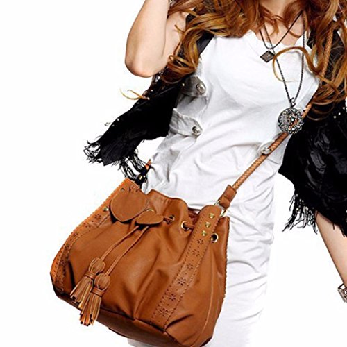 OVERMAL Women Leather Messenger Hobo Bags Handbag Shoulder Bag Tote Purse (Brown)