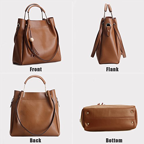 Purses S-ZONE Vintage Genuine Leather Tote Shoulder Bag Handbag Big Large Capacity