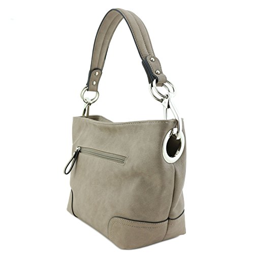 Small Hobo Shoulder Bag with Snap Hook Hardware Stone