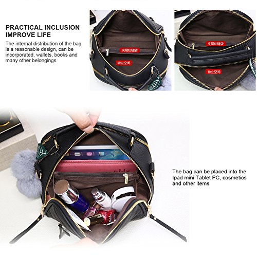 Women Handbag,Women Bag, KINGH Vintage PU Leather Shoulder Bag Purse 2 PCS Set Bag 089 Black