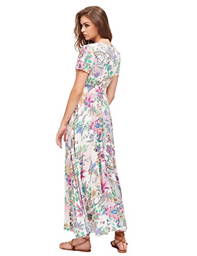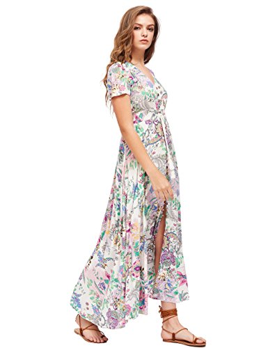 ZXZY Women Bohemian Print SplitDress Short Sleeve V Neck Floral Beach Maxi Dress