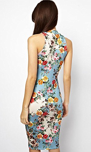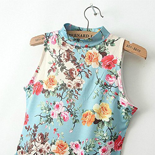 Cnlinkco Women Pastoral Floral Printed Sleeveless Party Cocktail Vintage Mini Dress