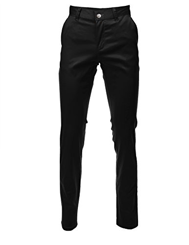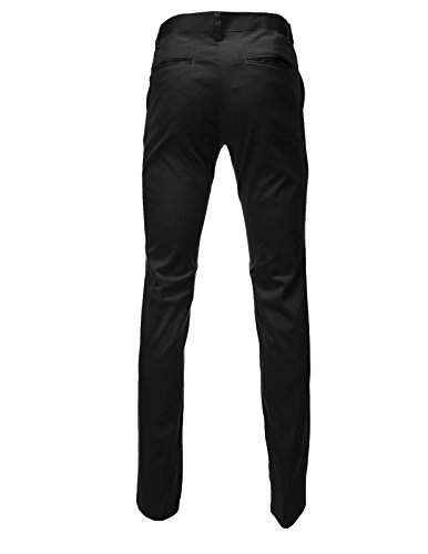 FLATSEVEN Mens Slim Fit Chino Pants Trouser Premium Cotton (CH101) Black, Size S